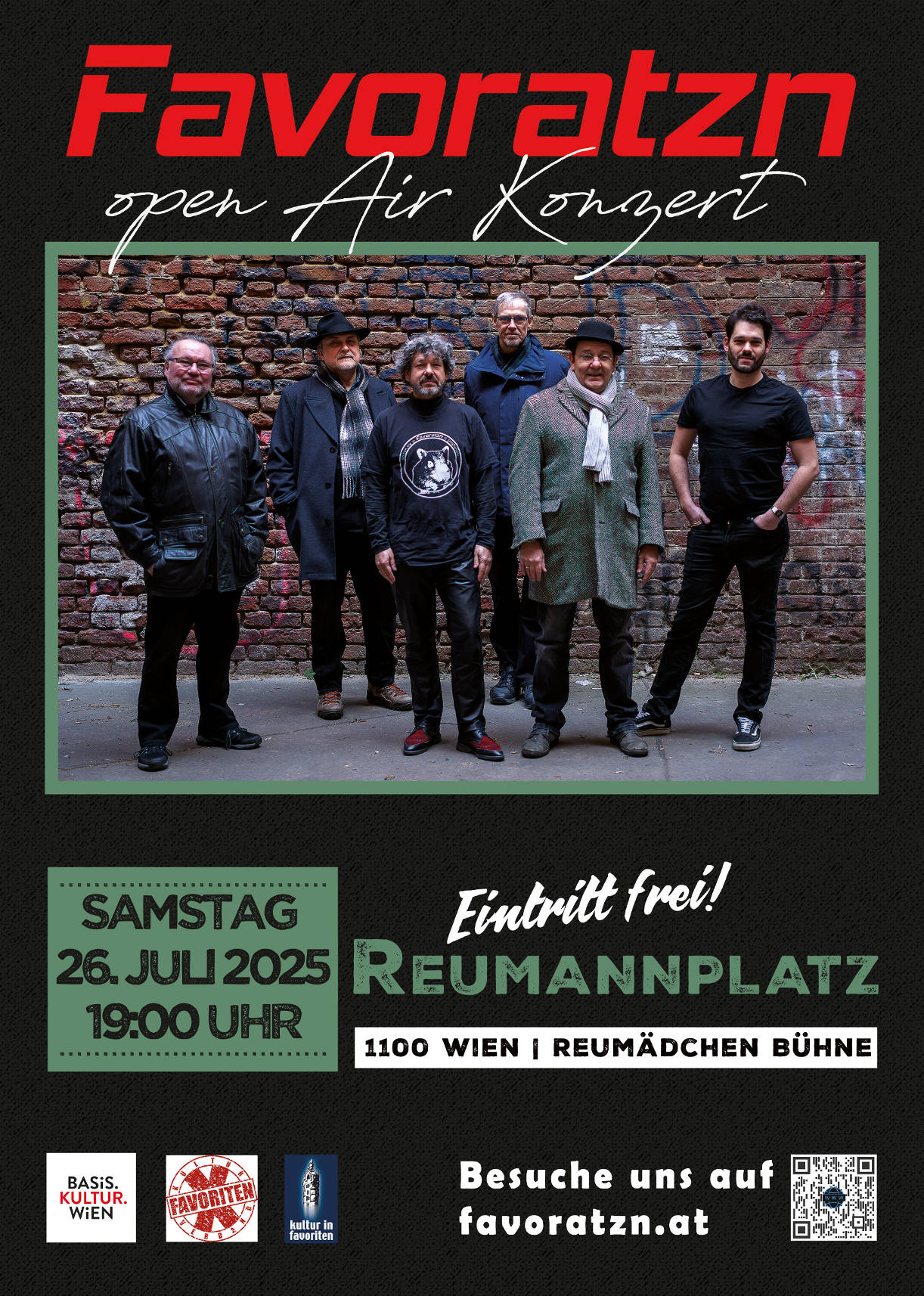 Die Favoratzn bringen seit 12 Jahren ihren ureigenen Mix aus ratziger Rockmusik und Wiener Texten bei zahlreichen Livekonzerten unters Volk. Jetzt ist die Zeit gekommen, die musikalischen Juwelen im Tonstudio in Gold zu fassen, als Tonträger zu veröffentlichen und in die Welt zu entlassen.